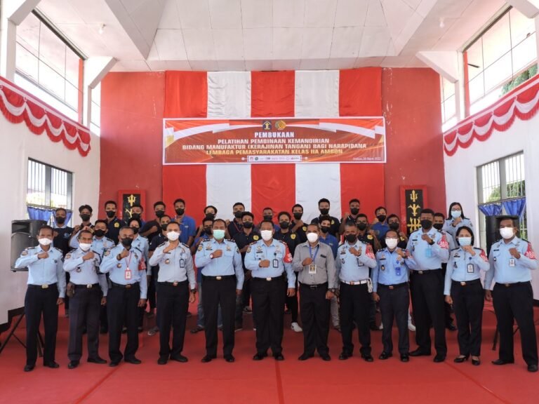 LASKAR – Program Pembinaan Kemandirian Bidang Manufaktur (Kerajinan Tangan) bagi Warga Binaan Pemasyarakatan (WBP) di Lembaga Pemasyarakatan (Lapas) Kelas IIA Ambon resmi dibuka, Selasa (8/3/2022).