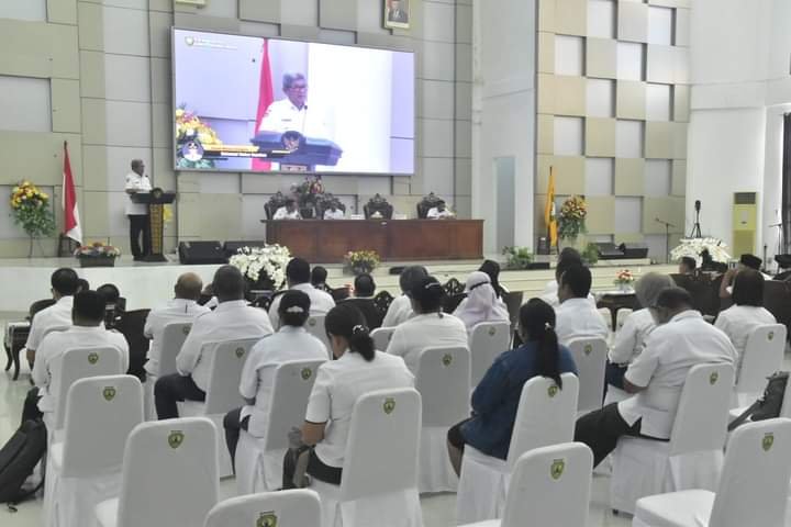 Setelah memberikan penghargaan, Sekretaris Daerah Maluku Tenggara A. Yani Rahawarin melakukan rapat koordinasi bersama Seluruh OPD lingkup pemerintahan Maluku Tenggara guna membahas penegakan disiplin PNS, serta memberikan pengarahan. (L07)