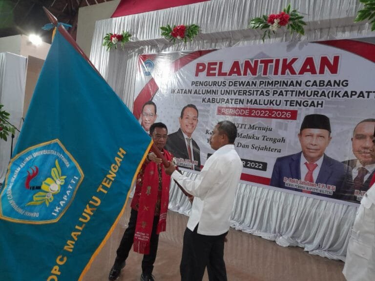 LASKAR – Ketua Umum Dewan Pimpinan Pusat Ikatan Alumni Universitas Pattimura (DPP IKAPATTI), DR Muhammad Marasabessy, SP, ST, M.Tech, secara resmi melantik Dewan Pimpinan Cabang (DPC) IKAPATTI Kabupaten Maluku Tengah, Periode 2022-2026.