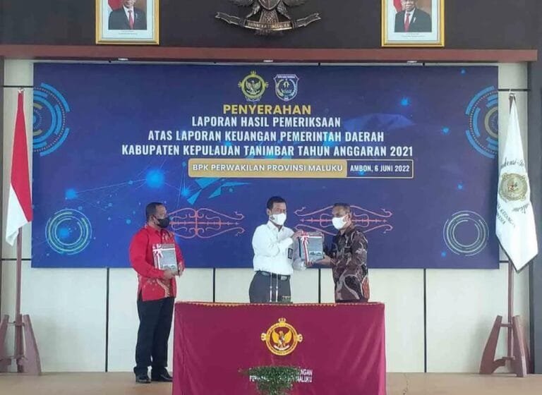 LASKAR – Kabupaten Kepulauan Tanimbar kembali meraih Opini Wajar Tanpa Pengecualian (WTP) dari Badan Pemeriksa Keuangan (BPK) Provinsi Maluku, atas Laporan Keuangan Pemerintah Daerah (LKPD) Kabupaten Kepulauan Tanimbar tahun anggaran 2021.