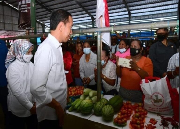 LASKAR – Presiden Joko Widodo didampingi Ibu Iriana Joko Widodo mengawali kegiatan kunjungan kerja hari kedua di Provinsi Maluku, dengan berkunjung ke Pasar Langgur, Kabupaten Maluku Tenggara, pada Kamis, (15/9/2022.