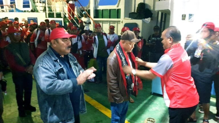 Kedatangan 296 Atlit dan official dari Kabupaten Buru, melalui Pelabuhan Feri Galala, Kecamatan Sirimau dijemput langsung Wakil Ketua KONI Maluku Bidang Organisasi Hengki Sopacua, dan Ketua Anggaran KONI Maluku, Amir Buton.