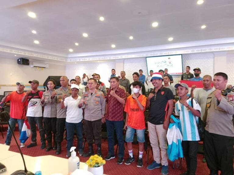 LASKAR – Pemerintah Kota Ambon bersama Polresta Pulau Ambon dan Pulau-pulau Leasa melakukan pertemuan dengan komunitas atau perwakilan fans Belanda dan fans Argentina di ruang rapat Vlissingen, Kantor Pemkot Ambon, Jumat (9/12/2022) sore