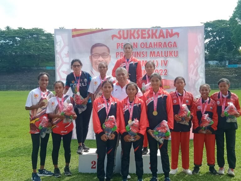 LASKAR – Final empat nomor lari estafet mewarnai hari erakhir cabang olahraga atletik Pekan Olahraga Provinsi Maluku (POPMAL) IV yang berlangsung di Stadion Mandala Remaja, Karang Panjang, Ambon, Kamis (24/11/2022).