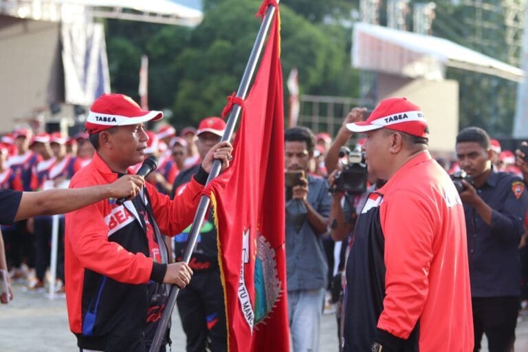 LASKAR – Penjabat Wali Kota Ambon Bodewin Wattimena resmi melepaskan kontingen Kota Ambon untuk mengikuti Pekan Olahraga Provinsi Maluku (Popmal) ke IV, Selasa (15/11/2022)