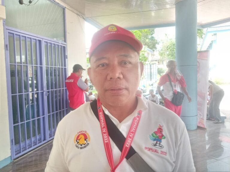 LASKAR – Manager Kontingen Buru Santono Ladae di sela sela Pertandingan senin (21/11/2022) optimis atletnya meraih medali emas pada kelas Catur Standar, Kilat dan cepat
