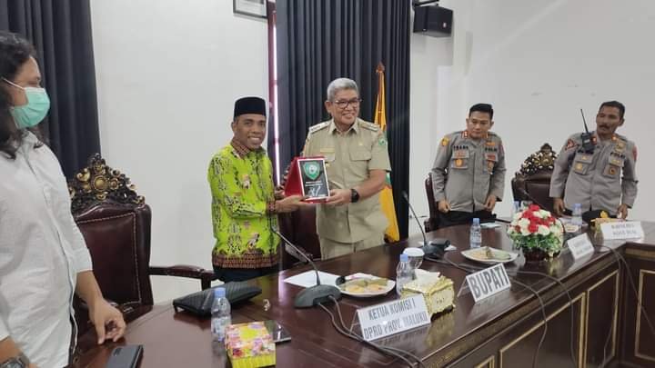 LASKAR – Bupati Maluku Tenggara Thaher Hanubun menerima kunjungan kerja Komisi I DPRD Maluku, dalam rangka agenda pengawasan realisasi APBD 2021 dan sumber dana lainya di Kabupaten Maluku Tenggara, Senin (13/6/2022).