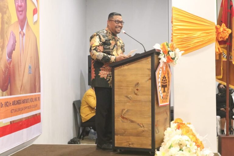 LASKAR – Gubernur Maluku Murad Ismail menghadiri pelantikan Pengurus Dewan Pimpinan Daerah (DPD) Ormas Musyawarah Kekeluargaan Gotong Royong (MKGR) Provinsi Maluku periode 2021-2026.