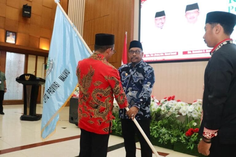 Pelepasan kafilah yang mengikuti MTQ nasional XXIX ditandai dengan penyerahan bendera kontingen dari Gubernur Maluku kepada Ketua LPTQ Maluku, Muhamat Marasabessy yang berlangsung di lantai VII Kantor Gubernur Maluku, Jumat (7/9/2022).