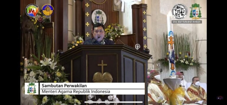 Lantaran itu, sebagai Menteri dirinya memberikan apresiasi dan selamat kepada Uskup Keuskupan Amboina yang merupakan Putra Maluku, Mgr Seno Ngutra dalam menjalankan tugas pelayanan pada umat Katolik di Ambon dan Maluku.