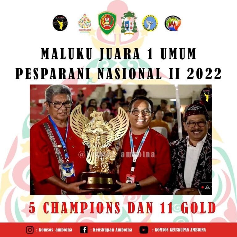 LASKAR – Provinsi Maluku akhirnya keluar sebagai Juara Umum Pesta Paduan Suara Gerejani (Pesparani) Katolik Nasional II tahun 2022 di Kota Kupang, Provinsi Nusa Tenggara Timur (NTT) tanggal 28-31 Oktober 2022.