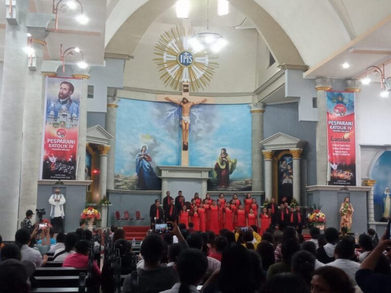 LASKAR – Paduan Suara Kategori Dewasa Campuran Kabupaten Maluku Tenggara, memukau di Pesta Paduan Suara Gerejani (Pesparani) Katolik ke-IV tingkat Provinsi Maluku, tahun 2022 di Kota Tual, Rabu (28/9/2022).