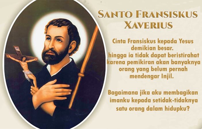 Santo Fransiskus Xaverius lahir pada tahun 1506, di Navara, Spanyol. Pada 15 Agustus 1534, Santo Fransiskus Xaverius, St, Ignatius dari Loyola dan bersama rekan-rekan yang lain mengikrarkan kaul-kaul kebiaraan.