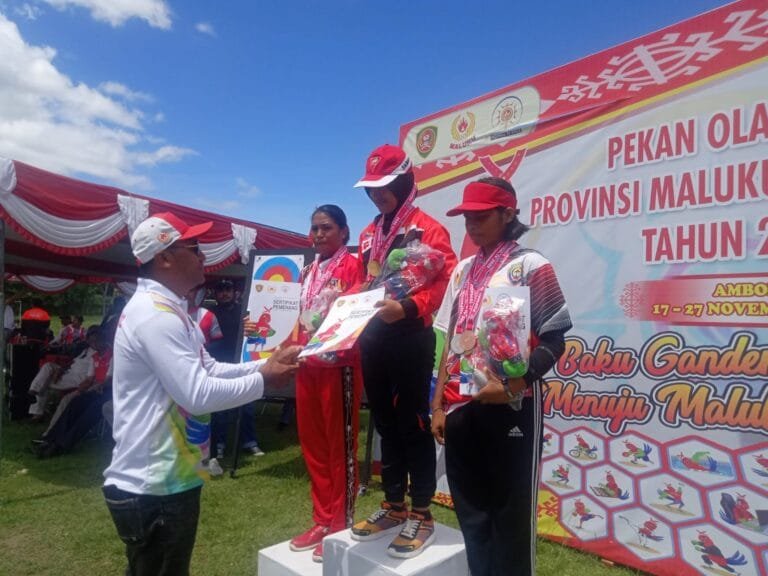 LASKAR – Para Atlet dari Kota Ambon, Kabupaten Kepulauan Aru dan Kabupaten Kepulauan Tanimbar (KKT) berjaya di cabang olahraga panahan Pekan Olahraga Provinsi Maluku (POPMAL) IV/2022.