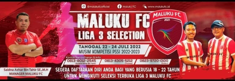 “Dengan demikian saya selaku Manager Maluku FC menyampaikan kepada seluruh pemain bola di mana saja berada terutama kelahiran 1999 – 2014 yang ingin bergabung dengan Maluku FC agar bisa mengikuti proses seleksi,” ujar Bintahir dalam rilisnya kepada media ini, Selasa (12/7/2022).