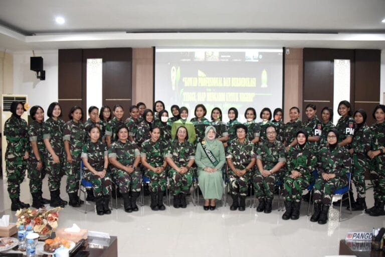 LASKAR– Pangdam XVI/ Pattimura Mayjen TNI Ruruh A. Setyawibawa, S.E., M.M didampingi Ny. Indah Ruruh A. Setyawibawa sebagai Ibu Raksakarini Sri Sena Kodam XVI/ Pattimura, selaku bapak dan ibu asuh Kowad Kodam XVI/ Pattimura menghadiri Rapat Koordinasi Pembinaan Kowad Terpusat 2022 secara virtual di Ruang Yudha Makodam, Senin (21/11/2022).