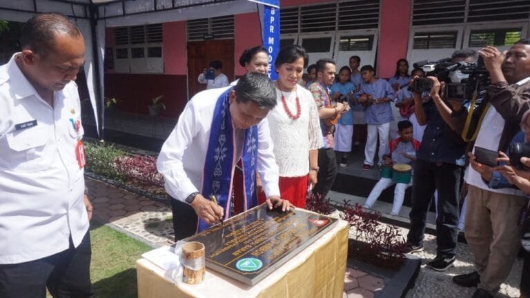 LASKAR – SMP Negeri 19 Ambon membuat monumen Tampa Garam dan Smart Class yang didiresmikan langsung oleh Pj Walikota Ambon Bodewin Wattimena, Rabu (9/11/2022)