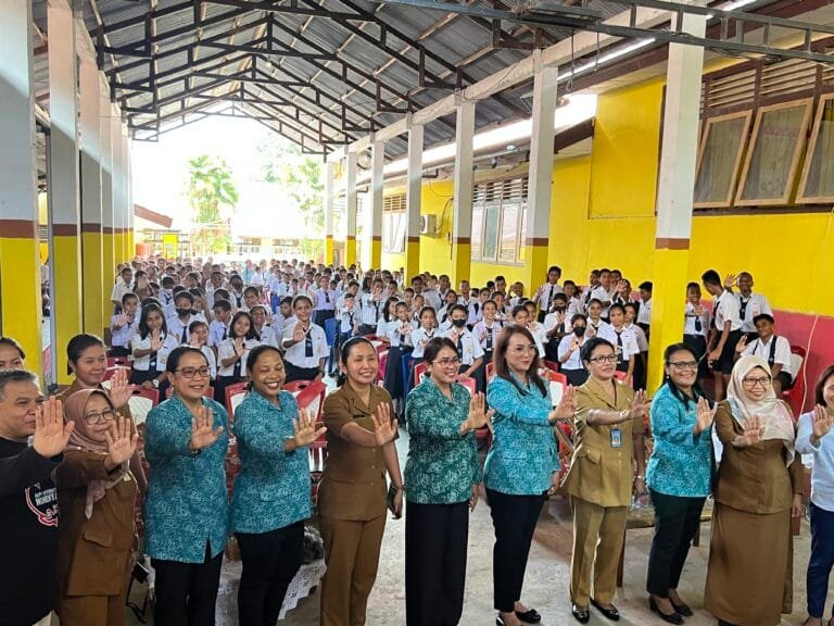 Kurang lebih 300 siswa SMP Negeri 9 Lateri mengikuti Sosialisasi Literasi Digital Kekerasan Seksual Berbasis Online yang dibawakan oleh Kadis DP3MD Kota Ambon Meggy Lekatompessy dan materi Kesehatan Reproduksi Kesehatan bagi Remaja dari Rumah Generasi.
