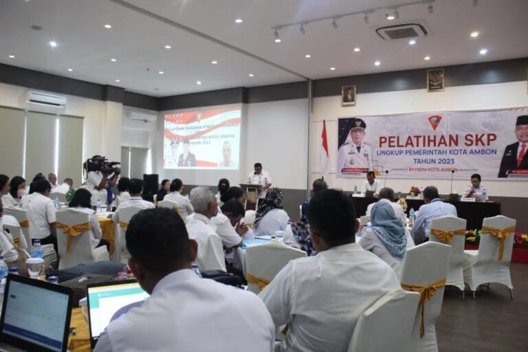 AMBON, LaskarMaluku.com – Pelatihan Sasaran Kinerja Pegawai (SKP) bagi Aparatur Sipil Negara (ASN) pada lingkup Pemkot Ambon untuk meningkatkan jiwa kepemimpinan yang handal berwibawa dan berdedikasi aparatur Pemerintah yang memiliki kompetensi nilai yang diinginkan.