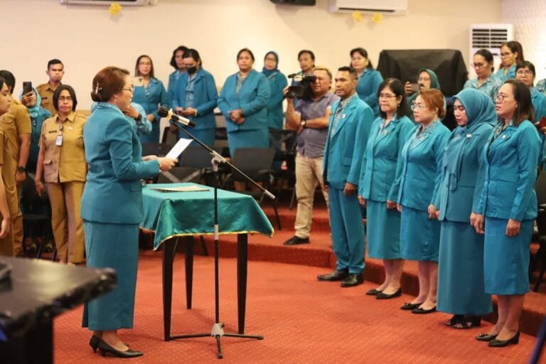 AMBON, LaskarMaluku.com – Ketua Tim Penggerak PKK (TP-PKK) Kota Ambon, Lisa Wattimena melantik 5 Ketua TP-PKK di tingkat Kecamatan yang ada di Kota Ambon, Senin (6/2/2023) yang berlangsung di Ruang Vlisingen Balai Kota Ambon.