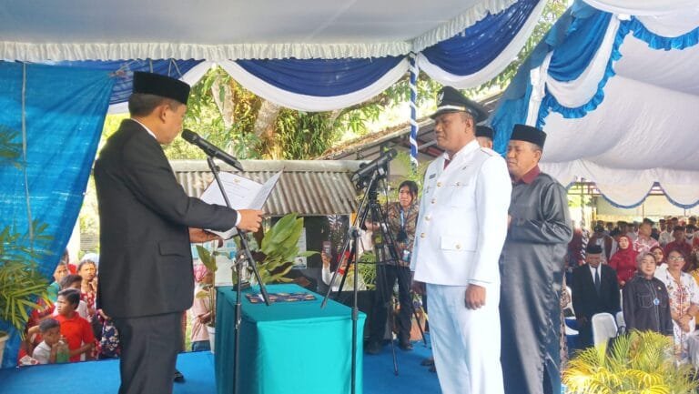 LASKAR – M.Yasir Mewar.SE resmi dilantik sebagai Raja Definitif Negeri Laha, Kecamatan Teluk Ambon Kota Ambon Periode 2023-2029, oleh Pj Walikota Ambon Bodewin Wattimena, di Negeri laha Kamis (5/1/2023).