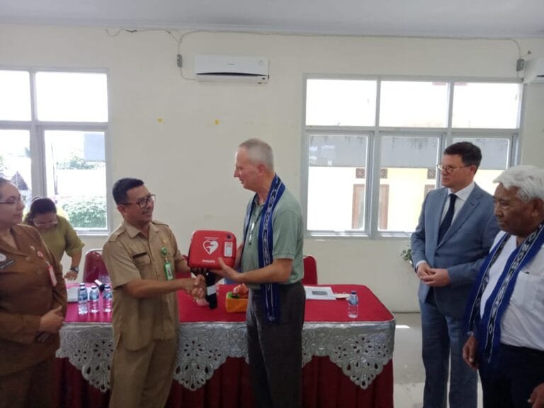 Menurutnya, tahun lalu, tim dokter Vlissingen telah datang ke Ambon untuk mengajar, training seluruh petugas di Puskesmas cara mengunakan alat AED itu.