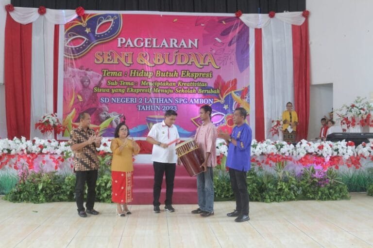 AMBON, LaskarMaluku.com – Pj Walikota Ambon Bodewin Watimena dengan resmi membuka Kegiatan Pagelaran seni dan Budaya SDN 2 Latihan SPG,Ambon Tahun 2023, yang berlangsung di Baileo Oikumene, pada Sabtu (17/6/2023).