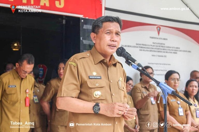 LASKAR – Pj. Wali Kota Ambon, Bodewin M. Wattimena, membeberkan, pengelolaan sampah akan didelegasikan ke Desa/Negeri dan Kelurahan. Hal tersebut disaimpakannya, saat memimpin apel perdana awal kerja di Tahun 2023, di halaman parkiran Balai Kota, Senin (2/1/2023).