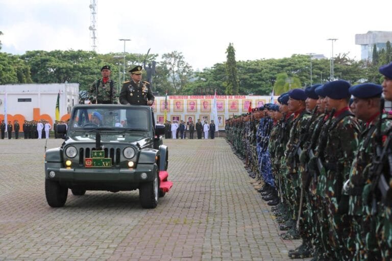 AMBON, LaskarMaluku.com – TNI di wilayah Kota Ambon- Provinsi Maluki menggelar Upacara dan Syukuran Hari Ulang Tahunnya yang ke-78. Upacara yang di gelar betlansung meria di Lapangan Merdeka Ambon, Kamis (5/10/2023).