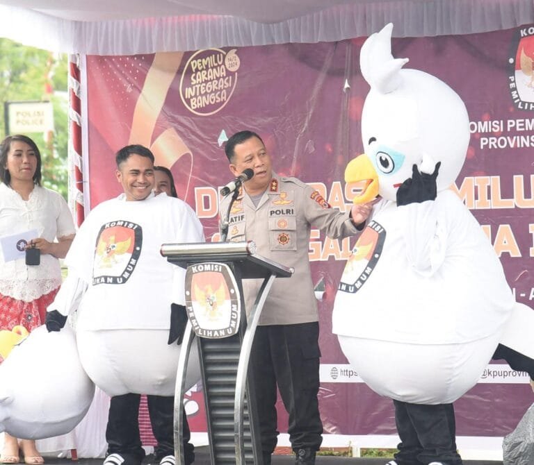 AMBON, LaskarMaluku.com – Guna menciptakan Pemilu aman di Maluku, Kapolda Maluku Irjen Pol Drs. Lotharia Latif SH.,M.Hum menginisiasi kegiatan deklarasi Pemilu damai dengan menggandeng KPU Maluku, dan Forkopimda serta partai Politik. Kegiatan tersebut berlangsung di monumen gong perdamaian dunia, Kota Ambon, Rabu (30/8/2023).