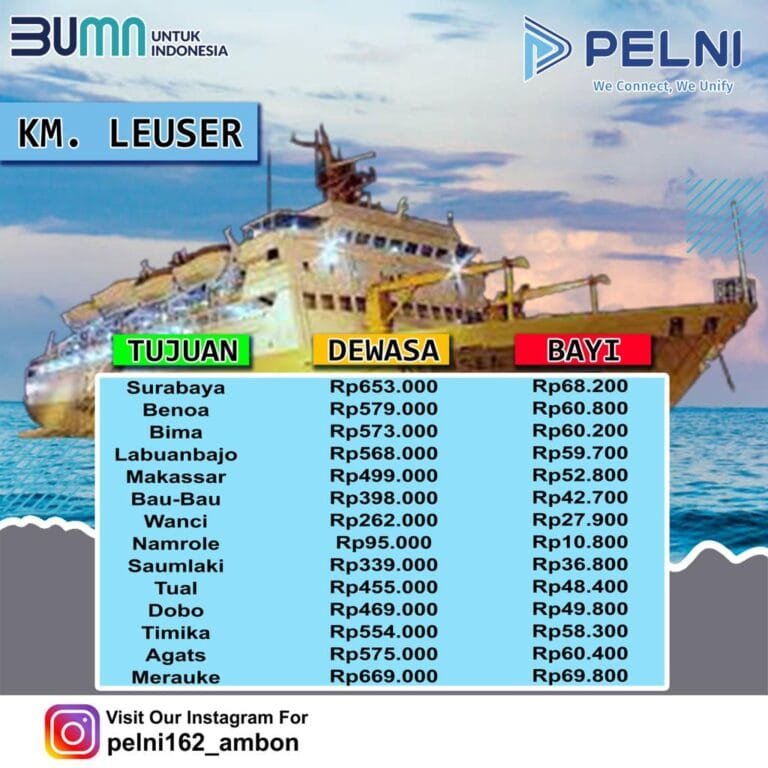 Namlea Rp99.000 (dewasa), Rp11.200 (bayi)