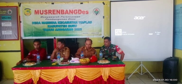 AMBON, LaskarMaluku.com – Dalam rangka mendukung program pembangunan Desa, Babinsa Koramil 1506-01/Namlea, Serda Adam Laitupa menghadiri kegiatan Musyawarah Perencanaan Pembangunan Desa TA 2023. Musrenbang Desa di Kantor Desa Namsina, Kecamatan Waplau, Kabupaten Buru, Senin (30/01/2023).