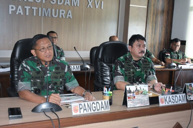 AMBON, LaskarMaluku.com – Dalam rangka optimalisasi penerapan atau implementasi pelaksanaan Rapat Pimpinan (Rapim) Kodam XVI/Pattimura Tahun 2023, Pangdam XVI/Pattimura Mayjen TNI Ruruh A Setyawibawa melaksanakan pengecekan ke jajaran Kodam XVI/Pattimura secara virtual (Vidcon), bertempat di Ruang Puskodalopsdam XVI/Pattimura, Senin (27/03/2023).