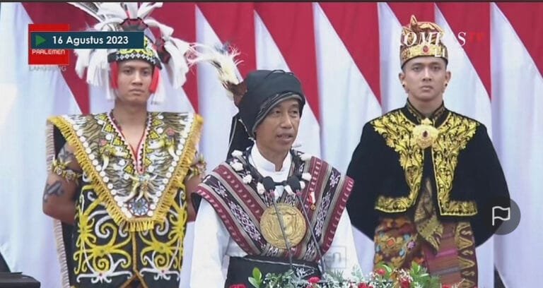 JAKARTA, LaskarMaluku.com – Presiden RI Joko Widodo (Jokowi) menyampaikan pidato kenegaraan di Sidang Tahunan MPR menggunakan baju adat dari Kepulauan Tanimbar, Provinsi Maluku.