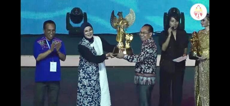 JAKARTA, LaskarMaluku.com – Ketua Kontingen Pesparani Katolik Tingkat Nasional III Provinsi Maluku, Widya Murad Ismail menyerahkan Piala Bergilir kepada ketua umum Panitia Pesparani Katolik tingkat nasional III, saat acara pembukaan, Sabtu (28/10/2023) di Ancol Beach City Internasional Stadium, Jakarta Utara.