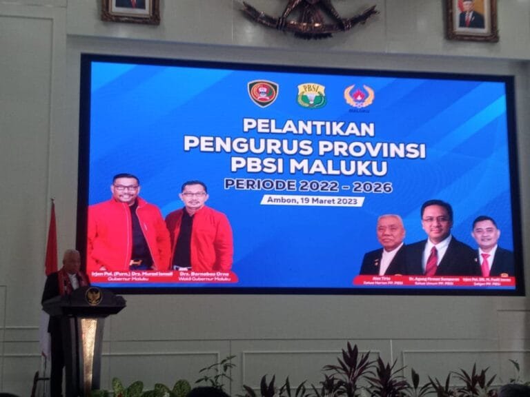 Pelantikan Pengprov PBSI Maluku periode 2022 – 2026 tersebut dilakukan Ketua Harian Pengurus Pusat (PP) PBSI Alex Tirta di Kantor Gubernur Maluku, Ambon, Minggu (19/3/2023).