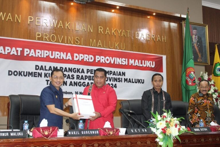 Hal itu disampaikan Wakil Gubernur Maluku, Barnabas Nathalie Orno saat Rapat Paripurna DPRD Maluku dalam rangka penyampaian dokumen Kebijakan Umum Anggaran (KUA) Prioritas dan Plafon Anggaran Sementara (PPAS) Rancangan APBD Murni 2024, yang berlangsung di Lantai 2 ruang Paripurna DPRD Maluku, Kamis (16/11/2023).