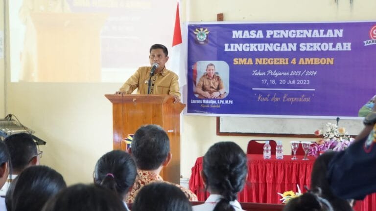 AMBON, LaskarMaluku.com – Sebagai alumni, Pj Walikota Ambon Bodewin Wattimena berharap kehadirannya pada kegiatan success story bagi siswa siswi baru di sekolah SMA Negeri 4 Ambon dapat memberikan semangat dan motivasi untuk menggapai masa depan dengan tekun belajar.
