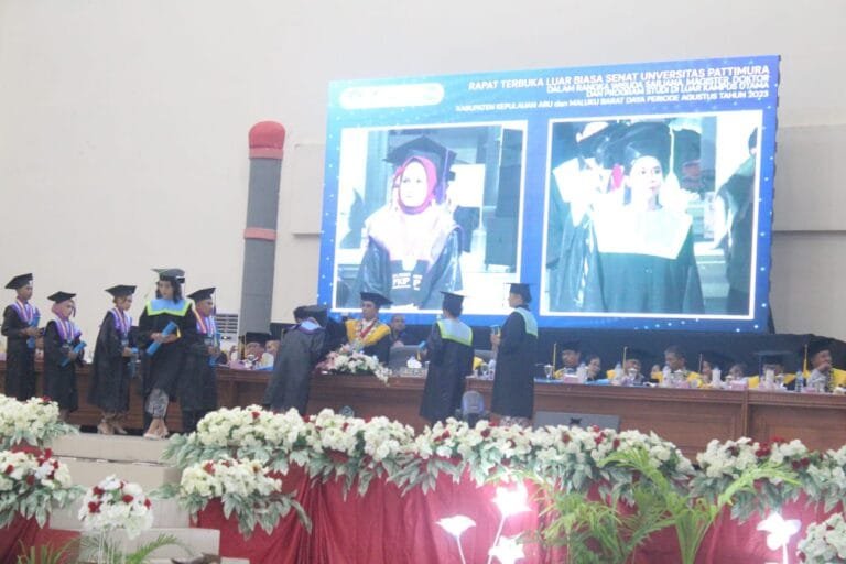 AMBON, LaskarMaluku.com – Sebanyak 2.055 lulusan Universitas Pattimura, Kamis (31/8), diwisudakan. Ribuan lulusan tersebut diwisudakan berdasarkan SK Rektor Unpatti Nomor 3229/UN13/SK/2023, dalam Rapat Senat Terbuka Luar Biasa dalam rangka wisuda Sarjana, Magister Doktor dan Program Studi Diluar Kampus Utama (PSDKU) Kabupaten Kepulauan Aru dan Kabupaten Maluku Barat daya periode Agustus 2023 yang dipimpin Ketua Senat, Prof. Dr. SEM Nurahua dan dihadiri Rektor Univeraitas Pattimura, Prof. Dr. MJ Sapteno dan Civitas Akademika Unpatti.