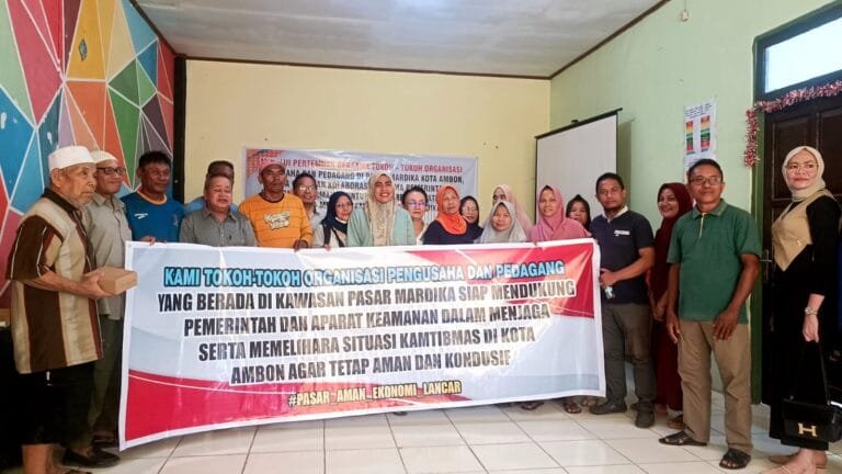 AMBON, LaskarMaluku.com – Guna menciptakan kolaborasi bersama pemerintah dan aparat keamanan serta untuk mempererat silaturahmi dalam rangka menjaga kawasan pasar Mardika yang aman dan nyaman, Pemerintah Kota Ambon dan Polsek Sirimau menggelar pertemuan dengan para pengusaha dan pedagang di Pasar Mardika Ambon. Pertemuan ini digelar Jumat (08/03/2024), di Kantor Lurah Rijali Mardika.