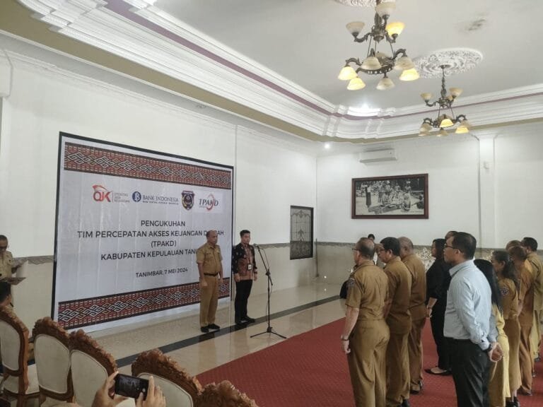 AMBON, LaskarMaluku.com – Pemerintah Kabupaten Kepulauan Tanimbar bersama Kantor Otoritas Jasa Keuangan Provinsi Maluku telah mengukuhkan Tim Percepatan Akses Keuangan Daerah (TPAKD) Kabupaten Kepulauan Tanimbar sebagai wujud komitmen untuk peningkatan kesejahteraan masyarakat melalui akselerasi program literasi dan inklusi keuangan.Pengukuhan TPAKD ini merupakan tindaklanjut dari Keputusan Bupati Kepulauan Tanimbar nomor 500-6-18-619-2024 tanggal 16 Februari 2024 tentang Pembentukan Tim Percepatan Akses Keuangan Daerah Kabupaten Kepulauan Tanimbar.