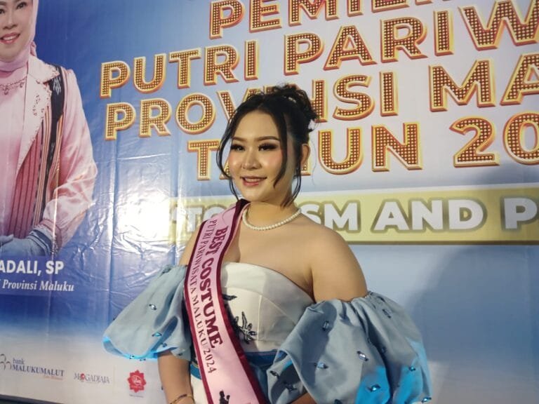 AMBON,LaskarMaluku.com – Angela Rosari Lowell Saputan meraih juara kostum terbaik atau Best Costume perwakilan kota Ambon di ajang pemilihan Putri Pariwisata Maluku (PPM) Tahun 2024, Jumat (9/8/24) malam.di Santika Hotel
