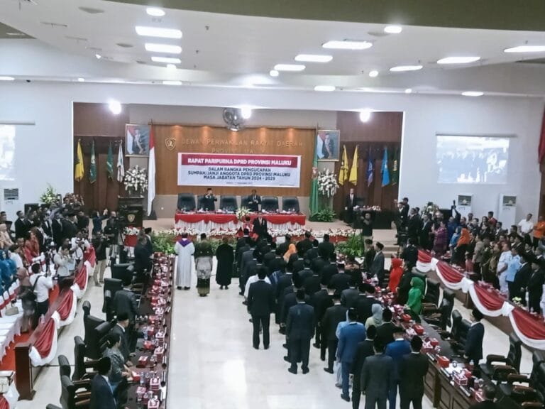 AMBON, LaskarMaluku.com – Ketua Pengadilan Tinggi (PT) Ambon, H. Ade Komarudin melantik 45 anggota DPRD Provinsi Maluku terpilih masa jabatan 2024-2029.