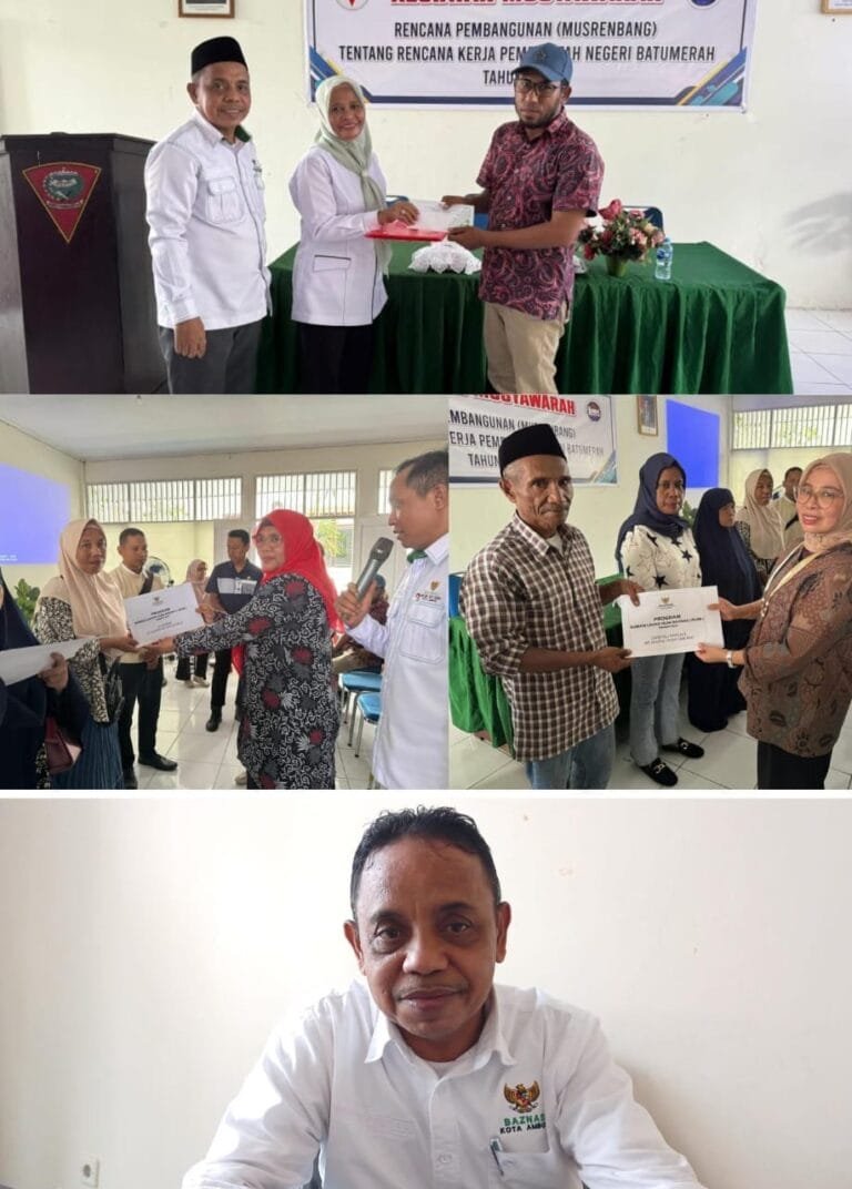 Sekaligus melakukan sosialisasi pengelolaan dan pendayagunaan zakat serta penyerahan SK Unit Pengumpul Zakat (UPZ) Negeri Batumerah. Bertempat di Aula Kantor Camat Sirimau Jalan Ina Tuni Kelurahan Karang Panjang kemarin,” ungkap Fakaubun kepada media di ruang kerjanya jumat (6/12/2024)pagi