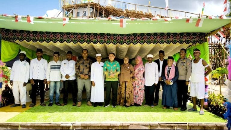Sekertaris Daerah(Sekda) Kabupaten Kepulauan Aru Jacob Ubyaan, S,sos. Msi, menghadiri acara prosesi pemasangan Tiang Tasbih atau Tiang Alif Masjid AL-Mukmin Dusun Jerukin Desa Maekor Kecamatan Aru Selatan Utara Kabupaten Kepulauan Aru, Provinsi Maluku, Minggu (17/11/2024).