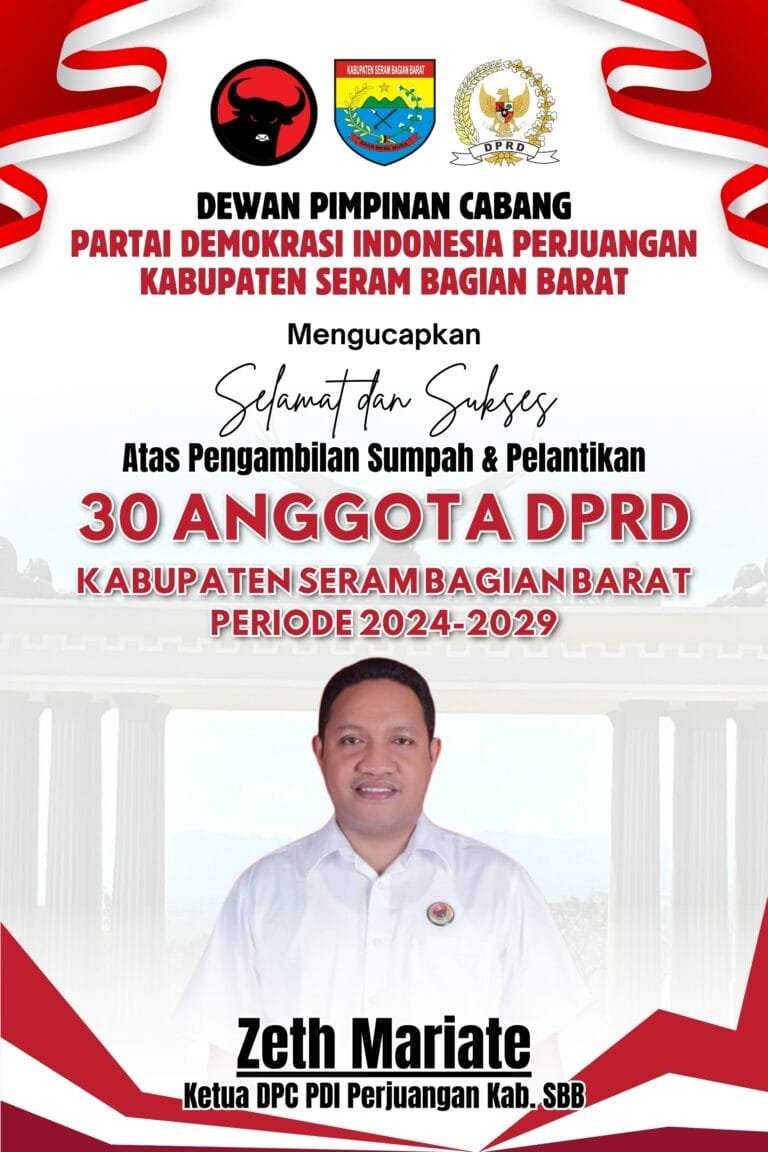 Komposisi unsur pimpinan Andarias Hengky Kolly ditetapkan menjadi Ketua DPRD Kabupaten SBB dari Fraksi PDIP, dengan perolehan lima kursi dari akumulasi lima belas ribu (15.000) suara yang diperoleh pada pemilihan umum legislatif 14 Februari 2024 lalu.