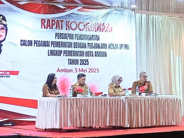 AMBON, LaskarMaluku.com – Pemerintah Kota (Pemkot) Ambon menggelar rapat Koordinasi persiapan pengangkatan calon pegawai pemerintah dengan perjanjian kerja (PPPK) di lingkup Pemkot Ambon