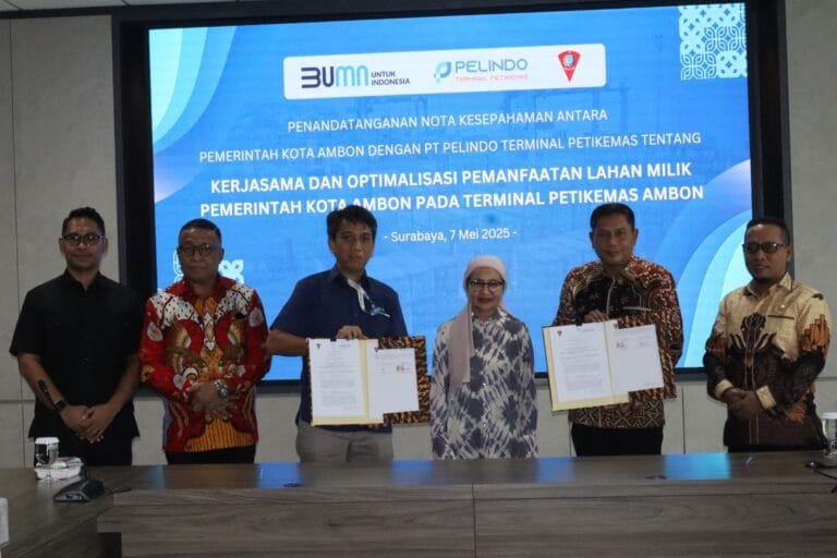 Penandatangan ini dilakukan Walikota Ambon, bersama Direktur Strategi dan Komersial Rima Noviyanti, bertempat di Graha Pelindo Surabaya, Rabu (7/5/25).