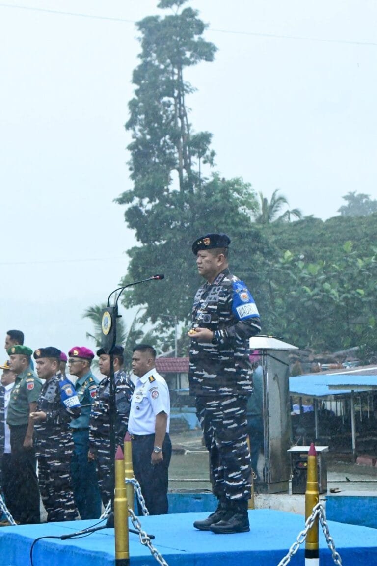 AMBON, LaskarMaluku.com – TNI Angkatan Laut. Pangkalan Utama TNI Angkatan Laut (Lantamal) IX Ambon. Brigadir Jenderal TNI (Mar) Suwandi, S.A.P., M.M., Panglima Komando Armada III (Pangkoarmada III) Laksamana Muda TNI Hersan, S.H., M.Si., memimpin apel gelar pasukan dalam rangka latihan Pencarian dan Penyelamatan (SAR) laka laut 2025 bertempat di Dermaga Irian Lantamal IX Ambon, Halong, Baguala, Kota Ambon, Maluku. Senin (04/08/2025)