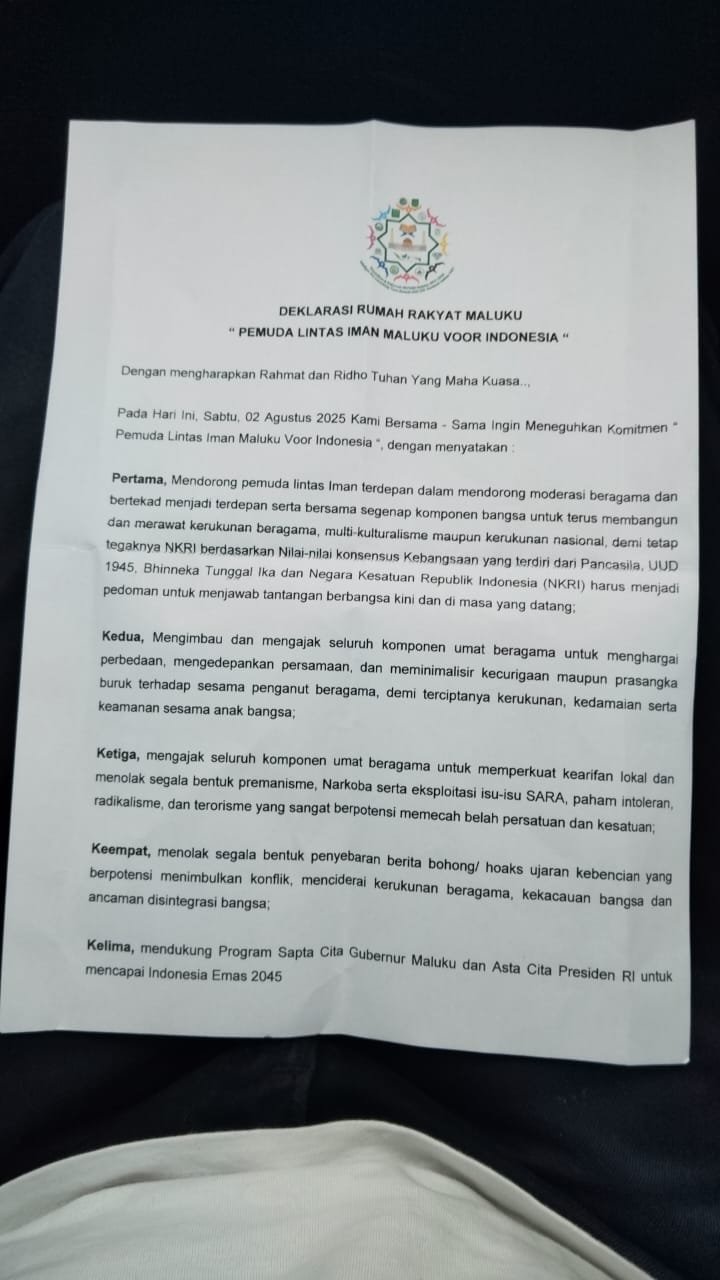 AMBON LaskarMaluku.com – Dewan Pimpinan Daerah Gerakan Angkatan Muda Kristen Indonesia, GAMKI Maluku, mengapresiasi Deklarasi Rumah Rakyat Maluku, Pemuda Lintas Iman Maluku Vor Indonesia yang mendorong kerukunan beragama, menyusul perkembangan terkini terkait sejumlah insiden menyoroti soal praktek – praktek intoleran yang belakangan ini bermunculan di sejumlah daerah di Indonesia.